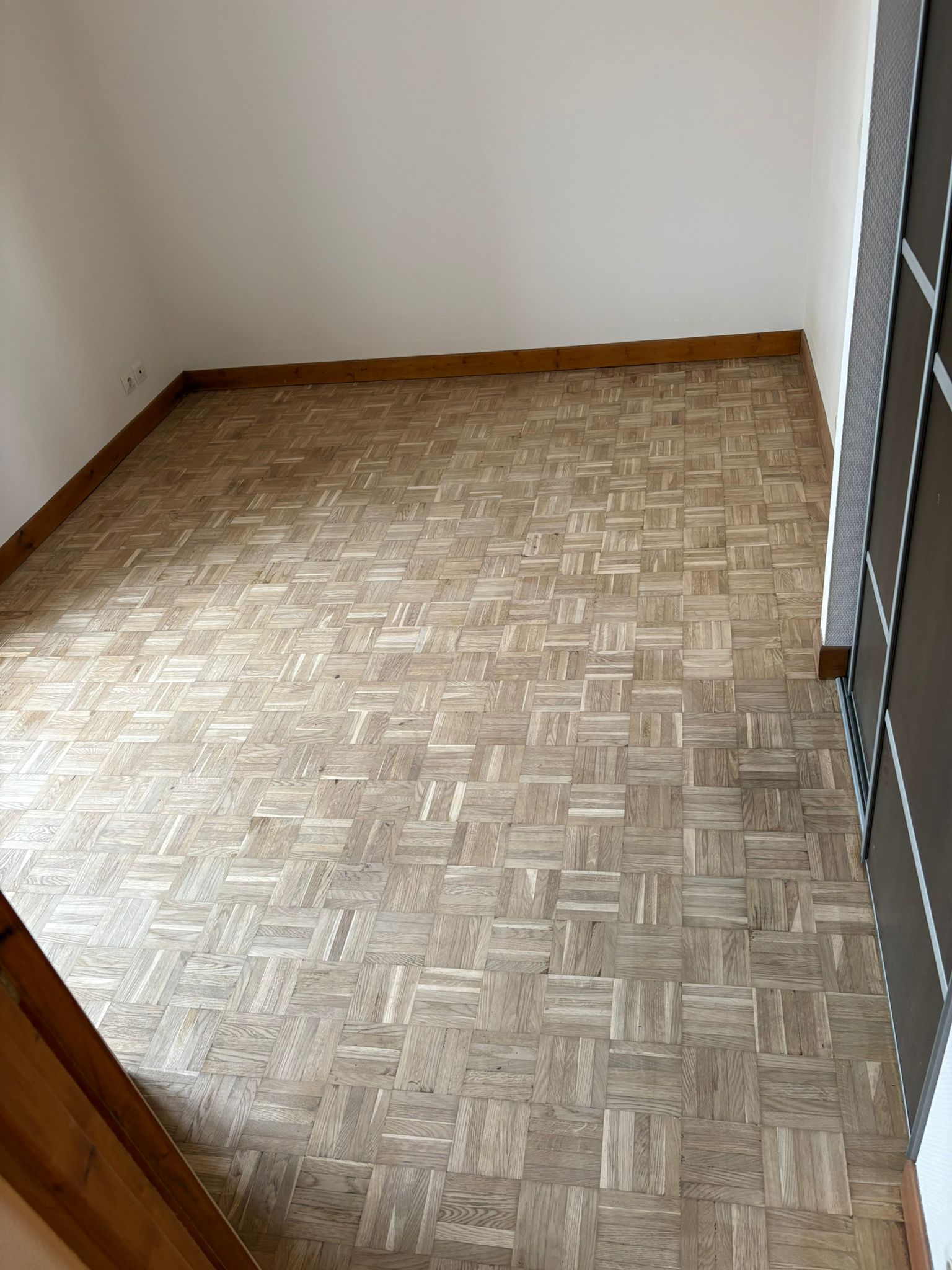 Nous sommes intervenus à Trélazé pour la rénovation complète d’un parquet mosaïque ancien, qui avait perdu de son éclat au fil des années.